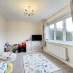 With a double glazed window to the front with blind and overlooking the cul de sac to treelined fields and rising countryside in the distance. Radiator. Along one wall there are four sliding doors, two of which are mirror fronted, to the wardrobe area. Television point.