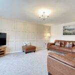 An exceptional room in terms of size and presentation and having double glazed french doors with adjacent windows opening to and overlooking the rear garden. Further deep window overlooking the rear garden and second double glazed window overlooking the garden. Sunken ceiling lights, part carpeted and part with wood grain effect flooring to the kitchen area which has soft close base cupboards and drawer units with wood block working surfaces over and upstand together with eye level cabinets and a tall larder cupboard with pull out shelves. Enamel one and a half bowl sink unit with drainer and flexible dual headed mixer tap. Built in dishwasher and a range master five ring electric hob with stainless steel splashback and cooker hood over. This room also has a radiator with cover, door to utility room and with a door to an under stair store cupboard in which are housed the control units for the solar panels.
