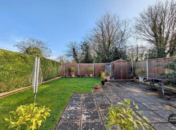 To the immediate rear of the property is a patio area with path leading to a lawned garden with various shrub borders and further patio area. The property also has the added benefit of a storage shed and is enclosed by fencing and hedging to provide a degree of privacy.