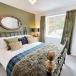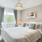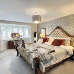With access hatch to loft storage space, deep double glazed window to the side, wall mounted thermostat, dimmer light switch and with oak doors to;