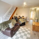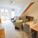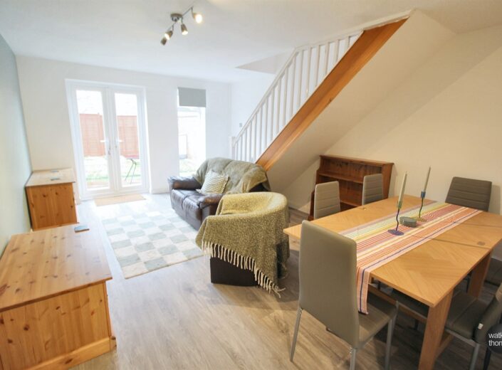 With rear aspect double glazed window, two panelled radiator's, laminated flooring, stairs to the first floor and double glazed French doors giving access to the rear garden.