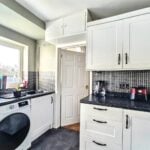 With rear aspect double glazed window, a range of units comprising stainless steel sink drainer unit with work surfaces, tiled splashbacks, base units under with matching wall units, integrated fridge freezer, plumbing and space for washing machine, space for cooker, tiled flooring and double glazed UPVC door to the garden.