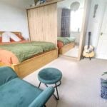 With rear aspect double glazed window, panelled radiator, picture rail, storage cupboard with power point and hanging rail, exposed floorboards and door to the kitchen.