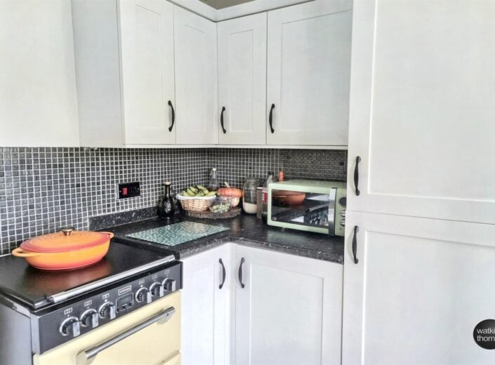 With rear aspect double glazed window, panelled radiator, picture rail and cupboard housing the gas central heating boiler.