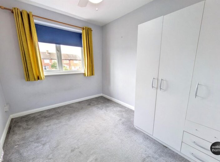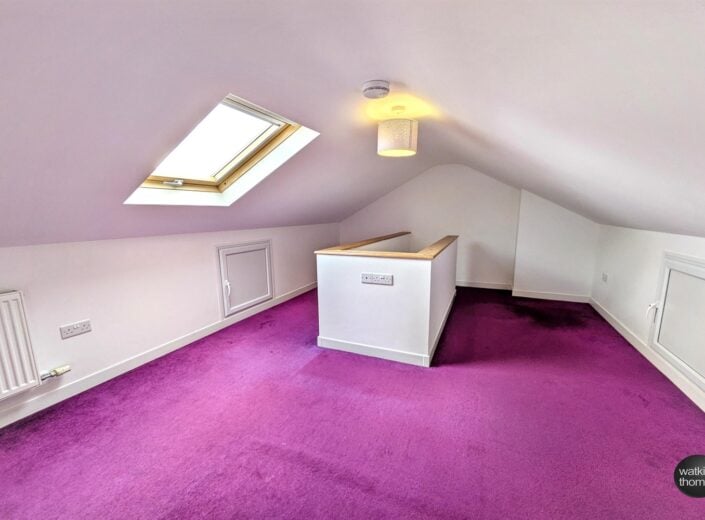 With rear aspect double glazed velux sky light, panelled radiator, eaves storage cupboard, television point, smoke alarm and reduced head height to sections of the room.