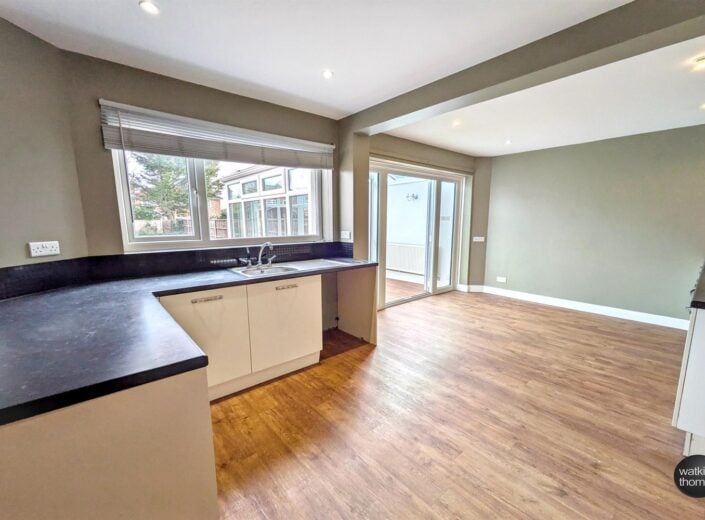 With front aspect glazed window, vinyl flooring, panelled radiator, smoke alarm, television point and door to the kitchen/dining room and sitting room.
