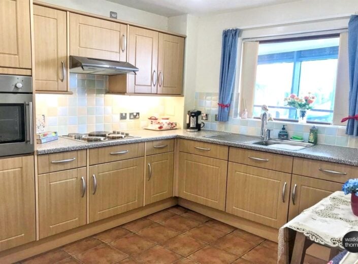 16 Eign Brook Court is a charming one-bedroom retirement garden flat nestled within the peaceful and sought-after Rose Garden development just off Ledbury Road. This modern, purpose-built property offers a warm and inviting living space, thoughtfully designed to provide comfort and ease of living. Filled with natural light, perfectly positioned to enjoy the sunny outlook over the garden and patio area. The accommodation includes a well-appointed kitchen, sitting room overlooking the patio and garden area, good sized bedroom and a wet room with non-slip flooring. For ease, electrical sockets are raised and light switches are lowered and all doors have extra width for wheel chair access.