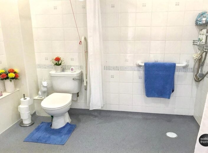With low flush WC, pedestal mounted wash hand basin, wall mounted shower, fully tiled wall surround, wall mounted electric heater, waterproof non-slip flooring, extractor fan and shaver point.