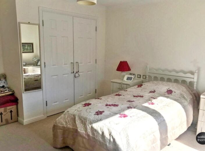 With rear aspect double glazed window, wall mounted electric heater, built in double wardrobe, television point, telephone point and coved ceiling.
