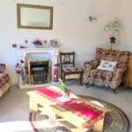 Having French door to the garden with full height non opening panel to the side, television point, telephone point, two wall lights, wall mounted electric heater, electric fire with surround and hearth, thermostat for heating and coved ceiling.