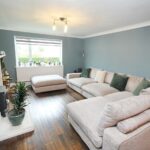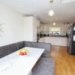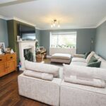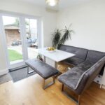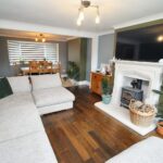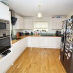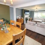 With front aspect double glazed window, a range of units comprising sink drainer unit with bamboo work surfaces, splashback, base units under with matching wall units. Integrated electric Bosch oven, integrated microwave, integrated electric hob with cooker hood over and integrated Bosch dishwasher. Space for upright fridge freezer, space for dining table, access hatch to loft space, panelled radiator, laminated flooring, TV point, door to the utility and double glazed french doors giving access to the rear garden.