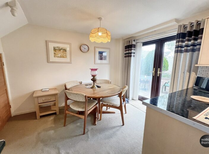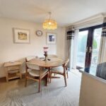 Dining area with panelled radiator, under stair storage cupboard, double glazed french doors giving access to the garden.