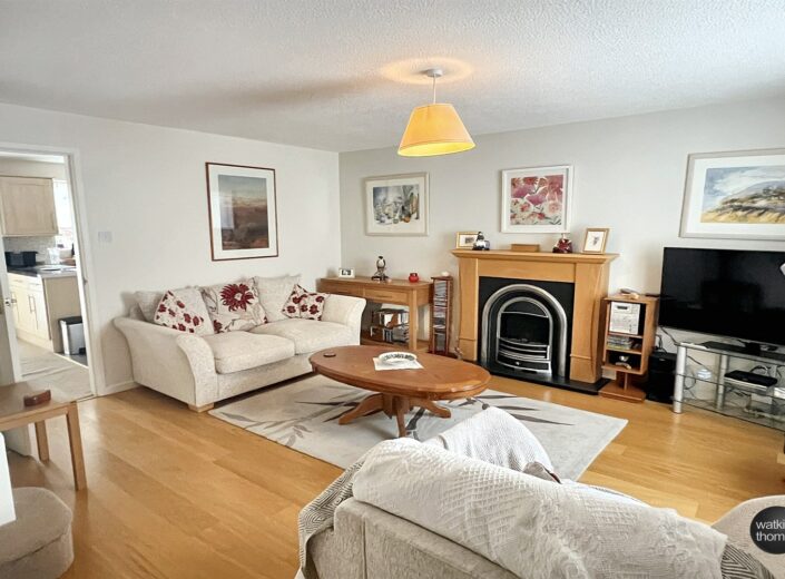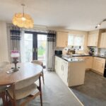 With front aspect double glazed window, TV point, panelled radiator, electric fire with decorative surround, stairs to the first floor, laminated flooring and door to the kitchen/dining room.