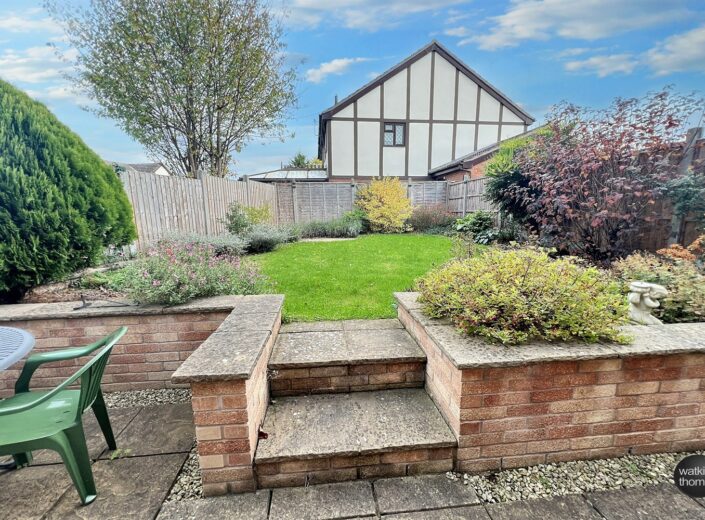 The side access pathway and gate give access to the rear garden, where there is a patio with steps leading to the main garden which is laid to lawn with shrub borders. There is a further circular patio and the garden is enclosed by fencing to provide a degree of privacy and also has the added benefit of an outside tap and light.