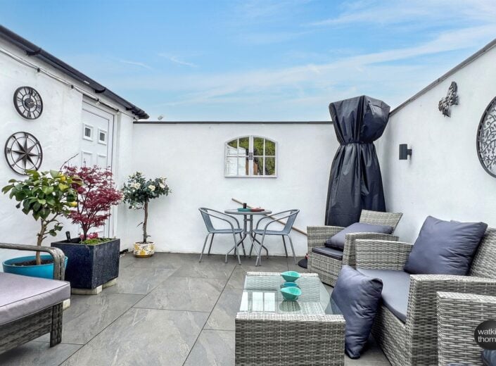 The Courtyard Garden Area (15' x 11') with rendered walls, copings over and feature tiled floor.