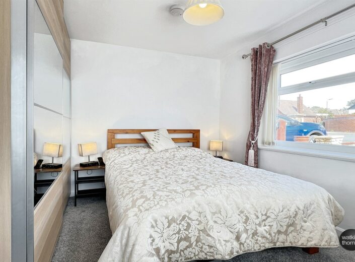 With access hatch to loft storage space and approached through a double glazed door with adjacent double glazed windows. Radiator with shelf over, wood grain effect flooring and with doors to the principal bedroom, shower room and the:
