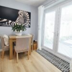 With rear aspect double glazed window with fitted blinds, television point, smoke alarm, stairs to first floor, laminated flooring, space for dining table, under-stairs storage cupboard and rear aspect double glazed French doors with 'Perfect Fit' custom made blinds leading to the rear garden.