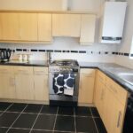 With front aspect triple glazed window with fitted blinds. A range of units comprising single drainer sink drainer unit, work surfaces, tiled splash backs, base units under with matching wall units, space for upright fridge freezer, plumbing and space for dishwasher, tiled flooring, wall mounted gas central heating boiler, space for cooker with cooker hood over.