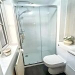 With front aspect triple glazed window with fitted blinds, double shower cubicle with thermostatically controlled shower and rainwater shower head. Low flush wc, vanity wash hand basin, shower boarded surround and extractor fan.