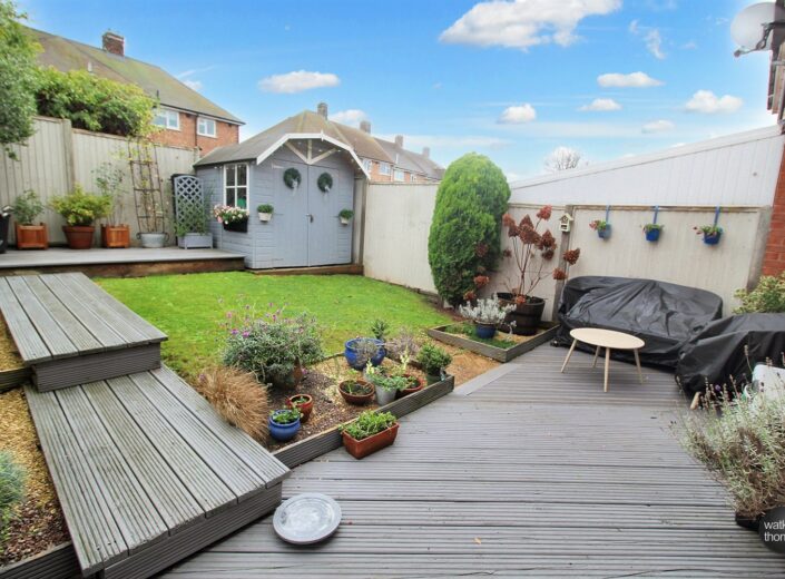 To the front of the property is a tarmacadam driveway with lawned area. A side path with side gate gives access to the rear garden. To the immediate rear of the property is a decked patio leading to the main garden which is laid to lawn. A decked path with gravel border gives access to a further decked seating area and there is a useful storage shed. The garden is enclosed by fencing to provide a degree of privacy.