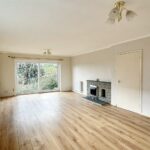 With a double glazed window to the side, sliding double glazed patio door opening to and overlooking the front to fields with treelined countryside beyond. Coved ceiling, radiator, hatch to kitchen, brick fire surround and wood laminate flooring.