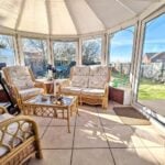 Of UPVC construction with two electric heaters, tiled flooring and twin double glazed doors to the rear garden.