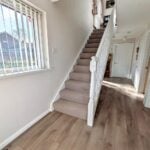 With front aspect double glazed window, panelled radiator, laminated flooring, smoke alarm, cloak cupboard with two entrance doors, cupboard housing the oil central heating boiler, stairs to first floor and door to the;
