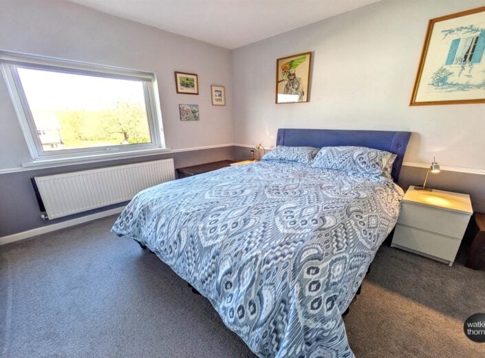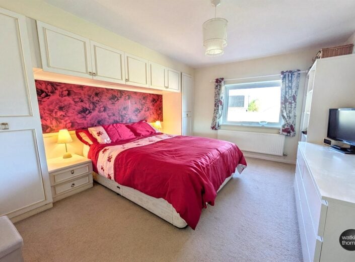 With rear aspect double glazed window, a range of built in wardrobes with cupboards over the bed and panelled radiator.