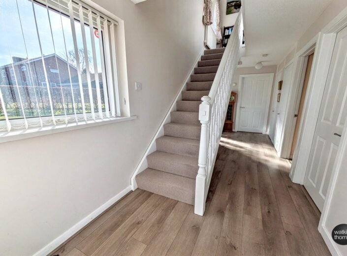 With front aspect double glazed window, access hatch to loft space, airing cupboard with hot water tank and shelving, smoke alarm, doors to bedrooms, bathroom and shower room.