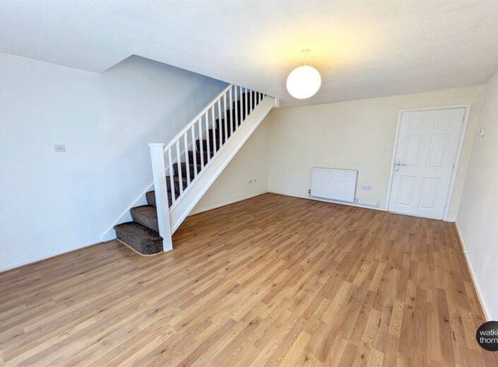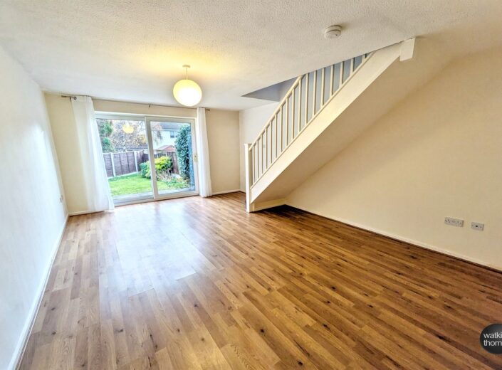 With rear aspect double glazed patio door to the garden, panelled radiator, two TV points, stairs to the first floor, smoke alarm and laminated flooring.