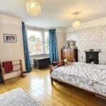 With a feature secondary glazed bay window to the front, picture rail, 9' ceiling height and with a timber fire surround with cast iron and tiled inset, tiled hearth and open grate. Radiator and exposed floor boards.