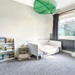 With a double glazed window overlooking the garden at the rear. Contemporary style radiator and a pair of recessed storage cupboards.