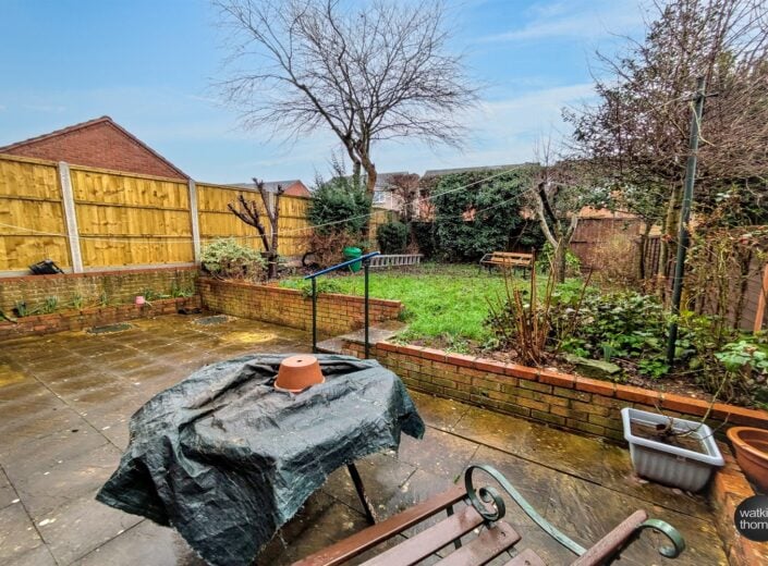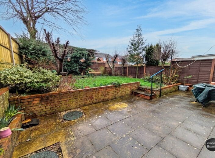 To the front of the property is a lawned garden with access to the front door and a driveway giving access to the garage (20'9 by 8'10) with up and over door, wall mounted gas central heating boiler, power and lighting, plumbing and space for washing machine, rear aspect double glazed window and glazed door to the rear garden. To the immediate rear of the property is a patio with useful outside tap. Two steps lead to the main garden which is laid to lawn. There are various shrub borders and the garden is enclosed by fencing and hedging to provide a degree of privacy.