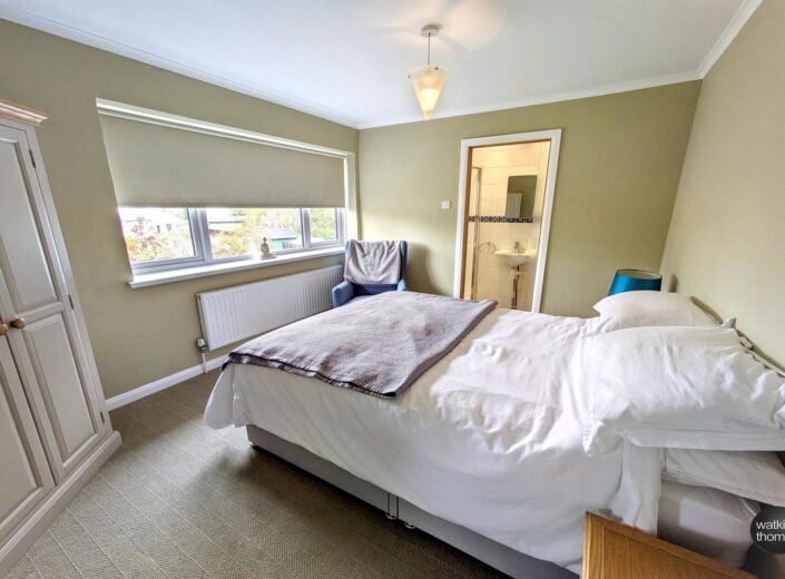 With rear aspect double glazed window, panelled radiator, coved ceiling and glass sliding door to the ensuite shower room.