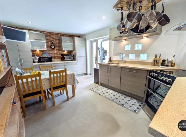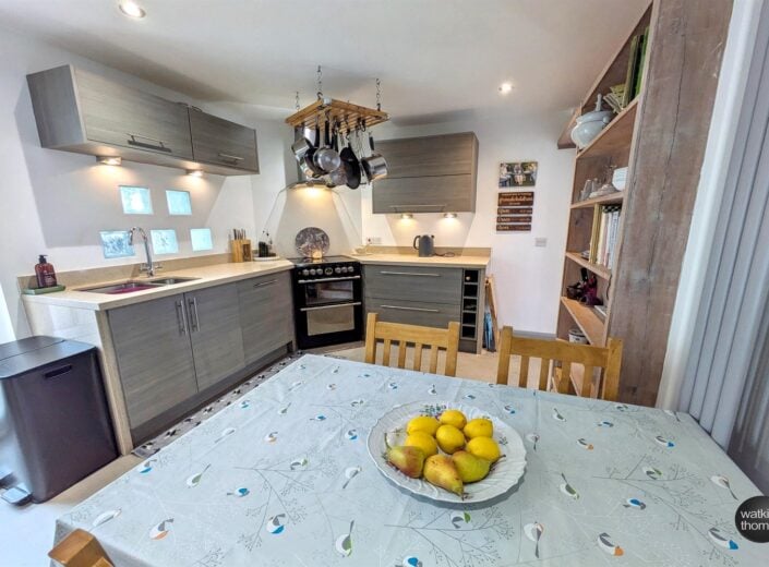 With rear and side aspect double glazed windows, larder cupboard, plumbing and space for washing machine, space for a tumble dryer and double glazed UPVC door to the garden.