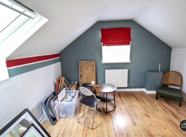 With rear aspect double glazed velux window, side aspect double glazed window, panelled radiator and laminated flooring.