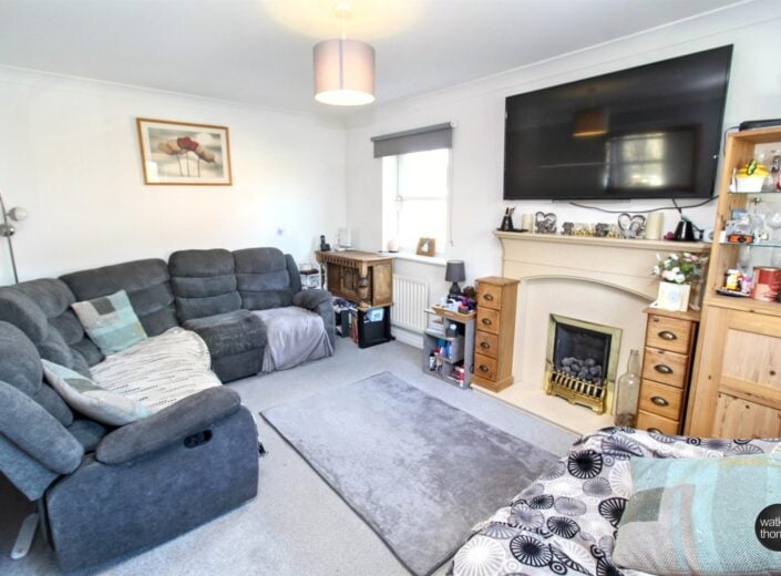 With front and side aspect double glazed windows, two panelled radiators, gas fire and decorative surround, TV point and coved ceiling.