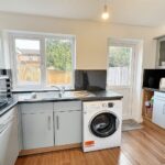 With a double glazed window to the rear, double glazed door to the rear and with fitted base cupboards with working surface over, matching upstands and double, single and glass fronted eye level cabinets. Built in oven with four ring hob over and stainless steel splashback, recess with plumbing for washing machine, single drainer sink unit with drainer and mixer tap and with recess for upright fridge freezer. Wood laminate flooring.