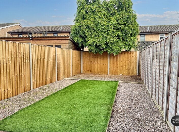At the front of the property there is a stoned area and at the rear there is a patio area with stone borders around an imitation grass rectangular garden. Boundaries are formed with panel fencing between concrete posts. The rear garden is approximately 36' long by 12' wide and is planned for ease of maintenance.