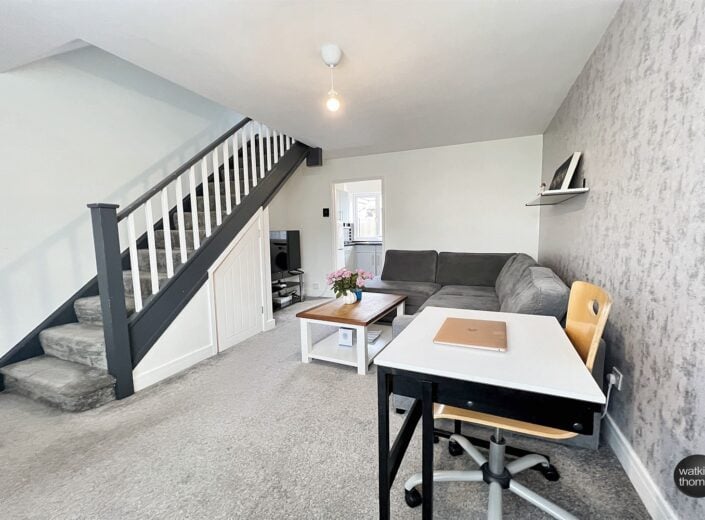 With a double glazed window with vertical blind to the front, radiator and over stair cupboard in which is housed the wall mounted gas fired boiler which provides central heating and domestic hot water.