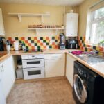 With front aspect double glazed window, a range of units comprising stainless steel one and a half bowl sink drainer unit. Work surfaces, tiled splashbacks, base units and matching wall units. Space for under counter fridge and freezer. Plumbing and space for washing machine. Larder cupboard. Wall mounted gas central heating boiler and tiled flooring.