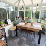 Of UPVC construction with rear and side aspect double glazed windows and side aspect double glazed french doors giving access to the garden.