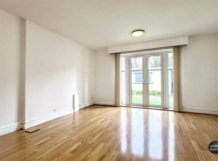 With a pair of french doors with adjacent double glazed window opening to and overlooking the rear garden area. Radiator and wood laminate flooring.