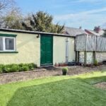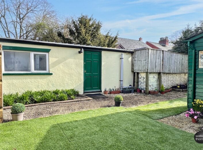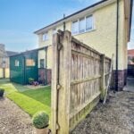 There is a stoned courtyard garden area at the side and rear of the property, a border and a USEFUL STORAGE SHED (17' 6 by 8' 8) with double glazed window, pitched roof, sink unit and door to;