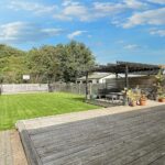 At the front of the property there is a large, four/six car brick pavior driveway with security lighting. The path at the side of the property opens to a wood/bike store and garden store. There is an outside tap and a brick pathway runs to the rear of the property where there is a large decked area, with eaves lighting, formed in timber and beyond which there is an expanse of lawn. At the far end of the garden there is a large concrete pad with basketball hoop along with power supply and outdoor plug sockets. The concrete pad is about 25' by 30' and is bounded by timber panels between concrete posts. The property adjoins and overlooks woodland at the rear.