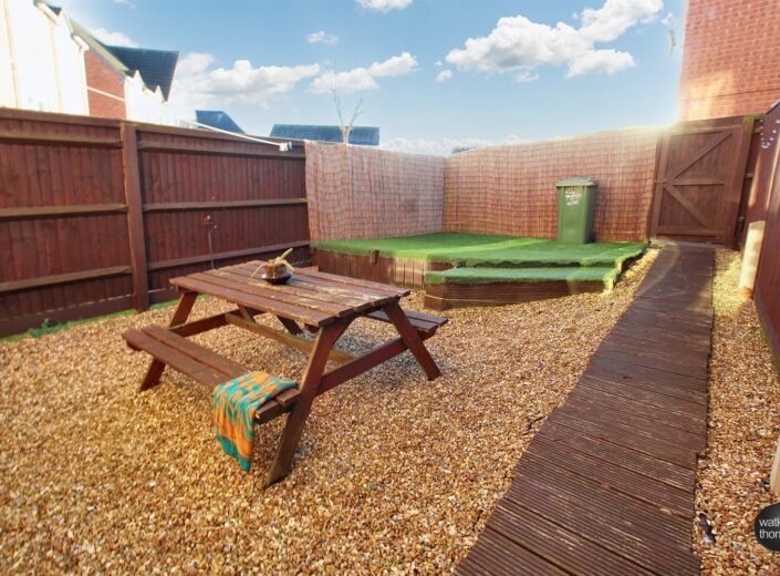 To the immediate rear of the property is a gravel area leading to a raised artificial lawn area. The garden is enclosed by fencing to provide a degree of privacy with a rear access gate. The garden also has the added benefit of an outside tap and lighting.