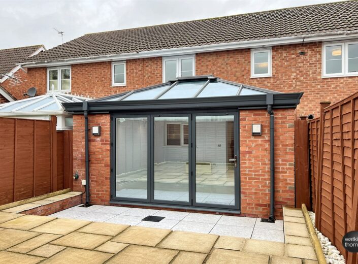 At the front there is a contoured paving stone pathway, adjacent to which there are shale borders. At the rear there is a garden area which is approximately 25' deep by 16' wide and is hard landscaped on two levels, with a lower level of marble effect tiles and an upper level of paving stones. At the rear of the orangery there are outside lights and a water tap, together with power point. From the garden a pathway runs to a private rear access serving just the subject property and the rear door of the garage.
