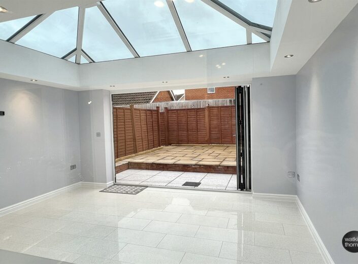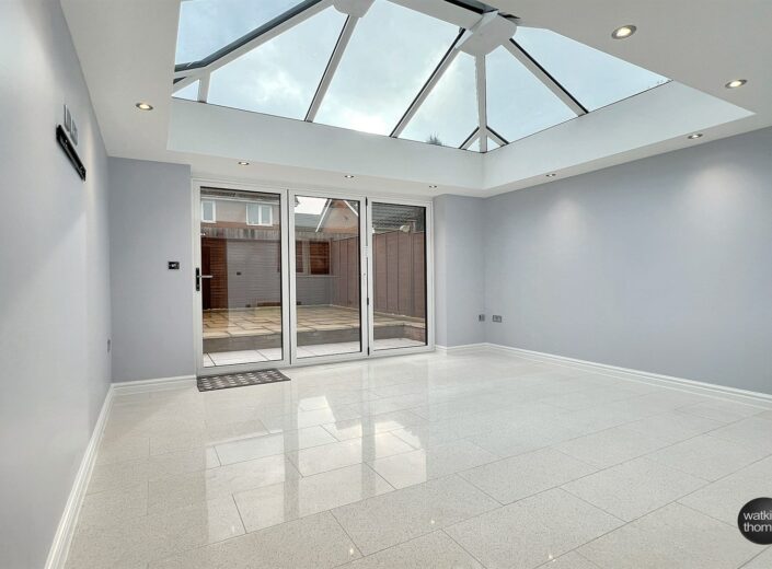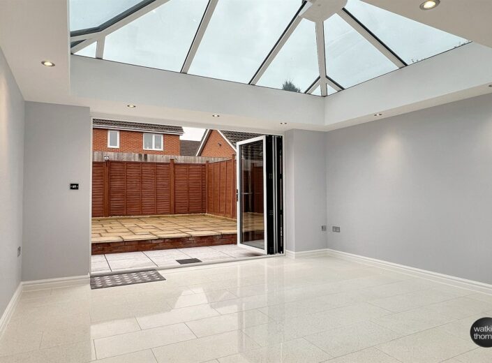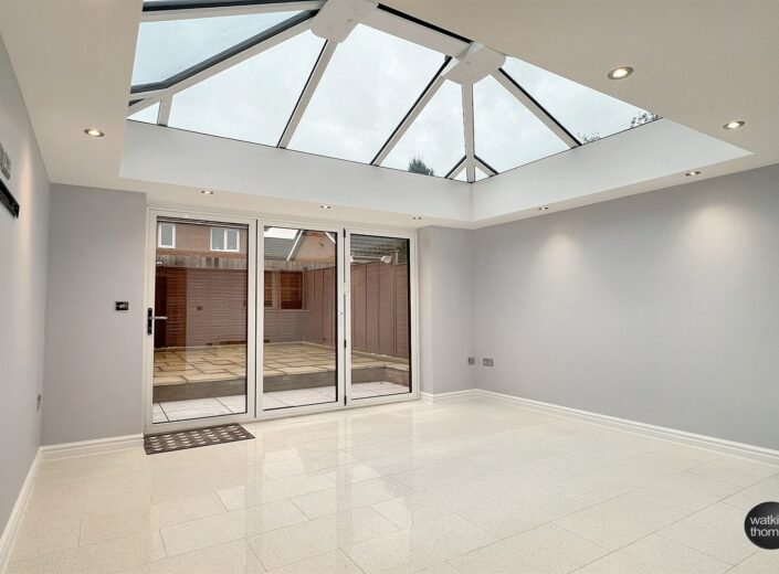 A quite exceptional space with reflective glass roof over, bifold doors, sunken ceiling lights, stainless steel power points, wall mounted electric heater, television bracket and further power points. The orangery overlooks the private rear garden.