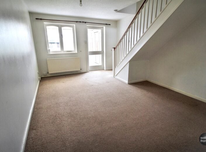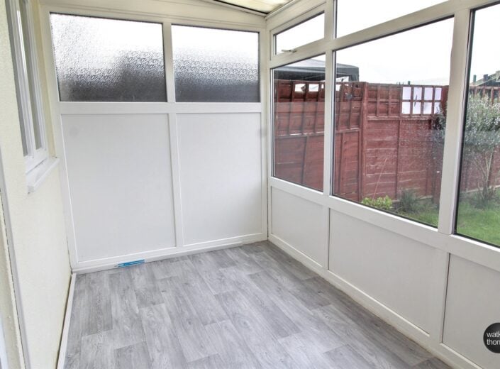 With single glazed window opening to the conservatory, glazed wooden door to the conservatory, central heating thermostat, television point, telephone point, smoke alarm and stairs leading to the first floor.