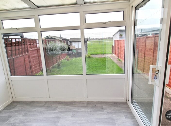 Of upvc construction with sliding door to the garden, fitted blinds to the roof and vinyl flooring.